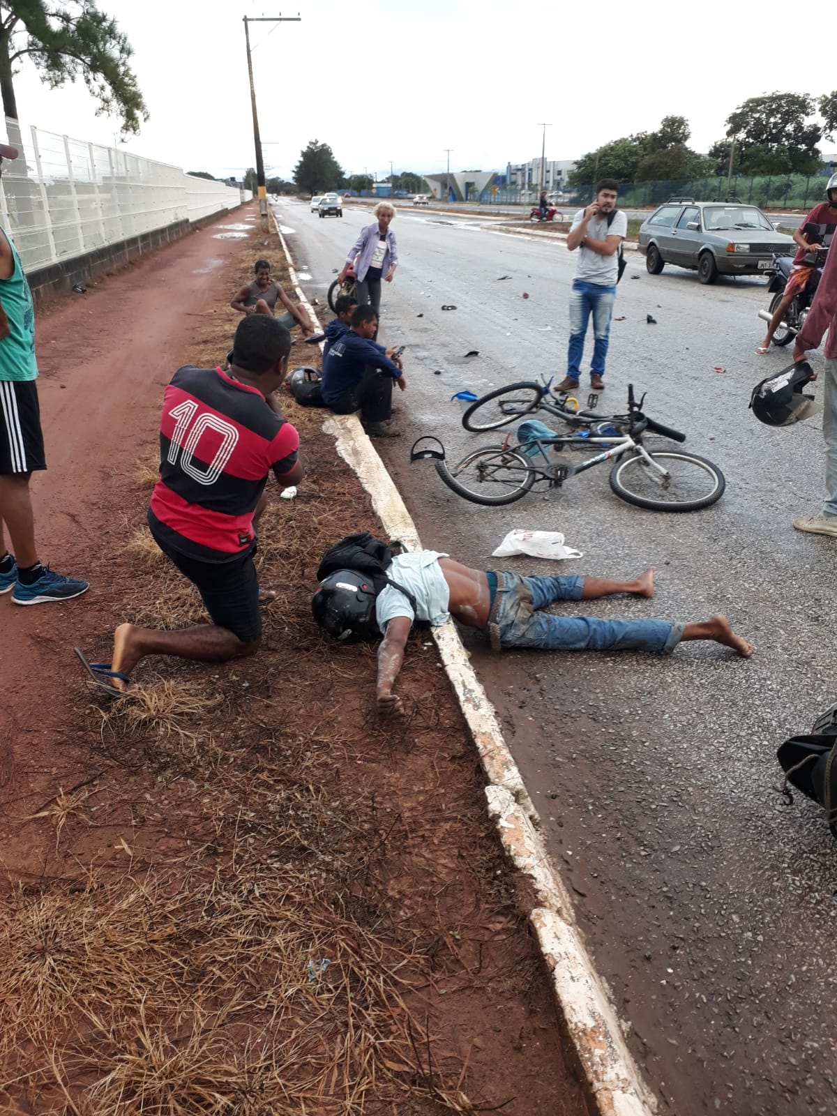 Segundo a polícia, o acidente aconteceu após uma moto colidir na traseira de outra moto e atingir duas pessoas que estavam de bicicletas.