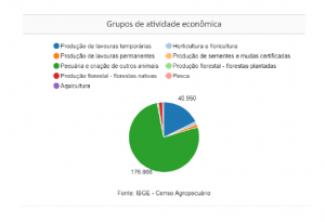 Os dados também revelam que a atividade econômica agropecuária que mais utiliza mão de obra é a pecuária, com 176 mil postos de trabalho gerados. Isso representa mais de 86% da força de trabalho utilizada, seguida da produção de lavouras temporárias (soja, milho, algodão por exemplo) e produção florestal. Esse quadro de distribuição de atividades se manteve estável nos últimos 10 anos.