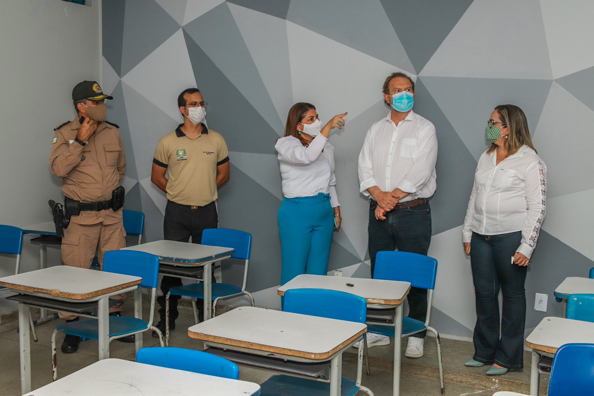 Acompanhado da secretária de Estado da Educação, Juventude e Esportes, Adriana Aguiar, o Governador Mauro Carlesse, visitou o Colégio Militar do Estado do Tocantins – Presidente Costa e Silva, primeira a adotar o novo padrão visual que está sendo aplicado nas escolas da rede estadual.