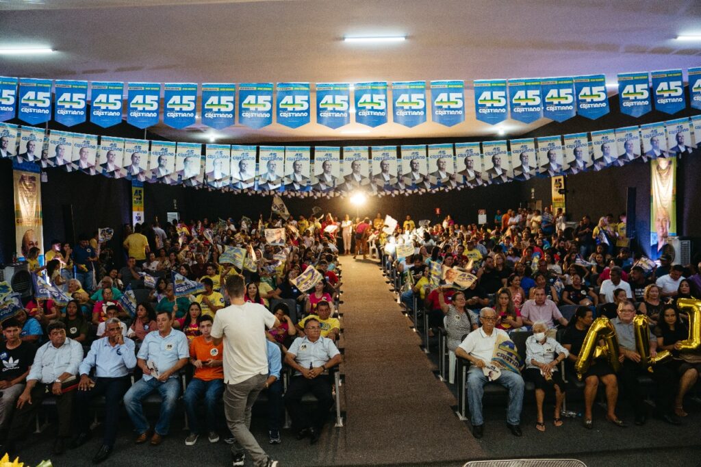 Nos momentos finais da fala de Cristiano, ele dizia da importância de trilhar a caminhada política junto a pessoas que agregam, enquanto descia do palco para cumprimentar pessoas que fazem parte da sua história. “Já recebi muito o conselho pra escolher pessoas de bem, que caminhem junto comigo acreditando nesse projeto, já que elas também vão comunicar quem eu sou. Porque nossa vida não foi construída de qualquer jeito. Foi com muito amor, muita luta e muito trabalho”, dizia ele.