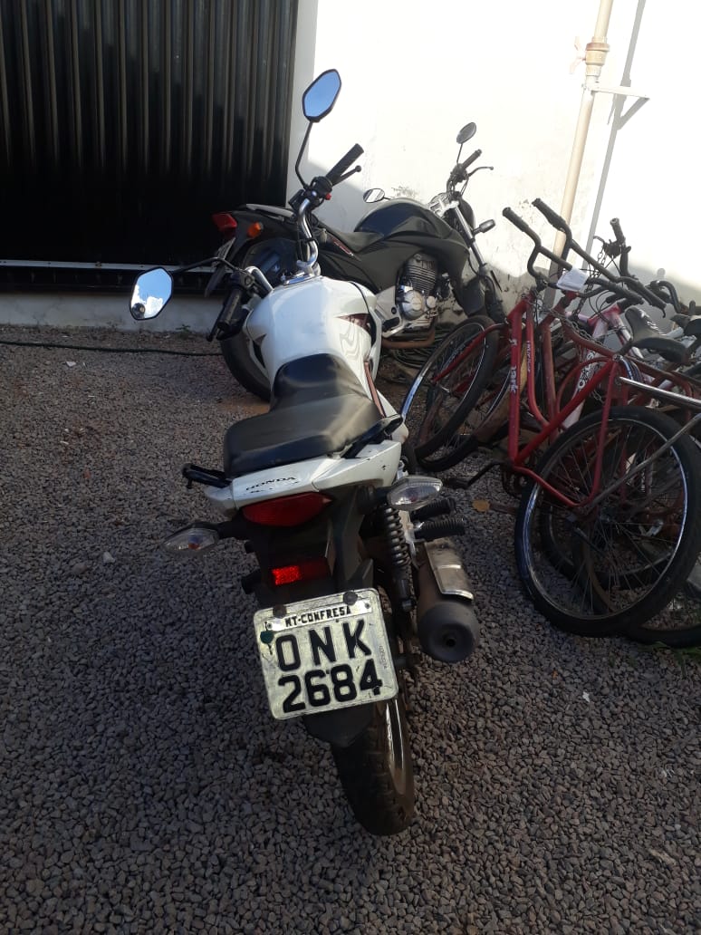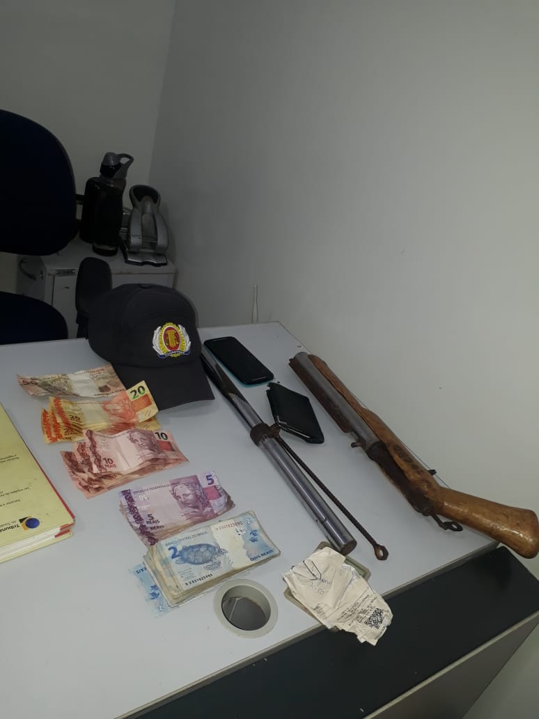 Após tomar conhecimento do assalto a Polícia Militar conseguiu localizar os suspeitos na Rua 20, próximo a BR-153 e apreendeu os menores, recuperou a motocicleta roubada, dinheiro e uma arma de fabricação caseira utilizada na ação.