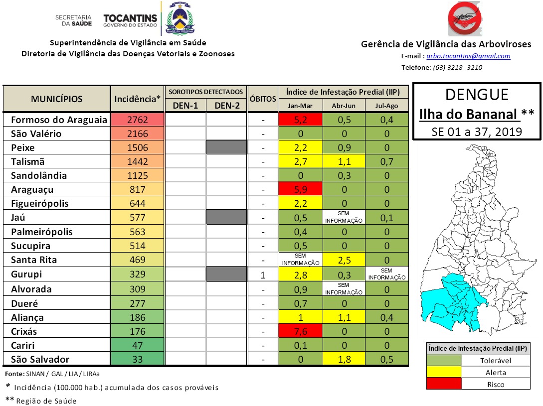 Dados divulgados pelo Governo do Estado, através da Secretaria Municipal de Saúde, mostram que Gurupi teve o menor índice nos casos de dengue em 2019, se mantendo fora da classificação de risco.