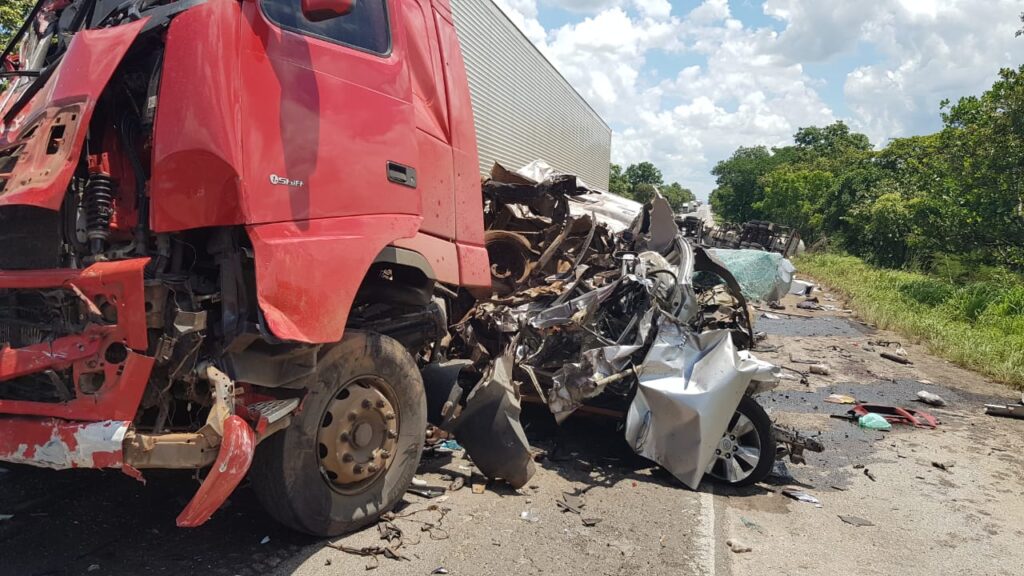 O acidente aconteceu na BR-153, próximo a Porangatu (GO) e envolveu três caminhões, um ônibus e uma caminhonete que ficou totalmente destruída. A pista está totalmente interditada e a PRF está no local realizando o controle e orientação do tráfego, bem como o levantamento do local e atendimento do acidente.