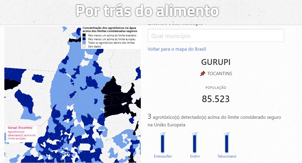 No entanto, conforme as investigações das jornalistas Ana Aranha e Luana Rocha, responsáveis pelas investigações conjunta da Repórter Brasil, Agência Pública e a organização suíça Public Eye, as informações questionadas pela reportagem do Portal Atitude à BRK Ambiental e à Vigilância Sanitária do Município de Gurupi fazem parte do Sistema de Informação de Vigilância da Qualidade da Água para Consumo Humano (Sisagua), e reúne os resultados de testes feitos pelas empresas de abastecimento. “Os números revelam que a contaminação da água está aumentando a passos largos e constantes. Em 2014, 75% dos testes detectaram agrotóxicos. Subiu para 84% em 2015 e foi para 88% em 2016, chegando a 92% em 2017. Nesse ritmo, em alguns anos, pode ficar difícil encontrar água sem agrotóxico nas torneiras do país”, aponta o levantamento. Elas relatam ainda que, apesar de tratar de informações públicas os testes não são divulgados de maneira compreensivas aos cidadãos brasileiros, deixando-os “no escuro sobre os riscos que correm ao beber um copo d’água” contaminado com agrotóxico.