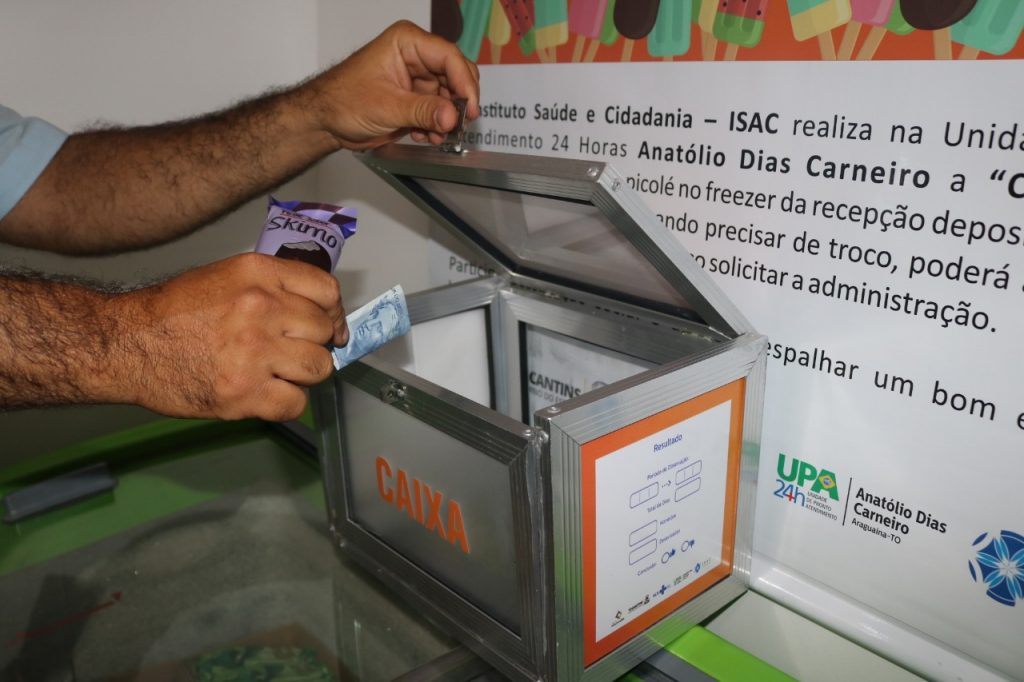 A campanha funciona assim: o paciente ou acompanhante têm à disposição mais de 1.000 picolés, de 15 sabores diferentes, em um freezer colocado na recepção da unidade. Quem pegar o picolé pode depositar o valor de R$ 2,00 em uma caixa logo acima do freezer.