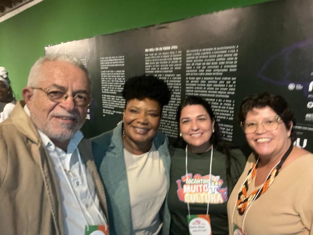 Da esquerda para a direita: secretário da Cultura do Tocantins Tião Pinheiro, ministra da Cultura Margareth Menezes, chefe da Assessoria Jurídica da Secult Dinara Prado e secretária-executiva Valéria Kurovski – Divulgação/Secult