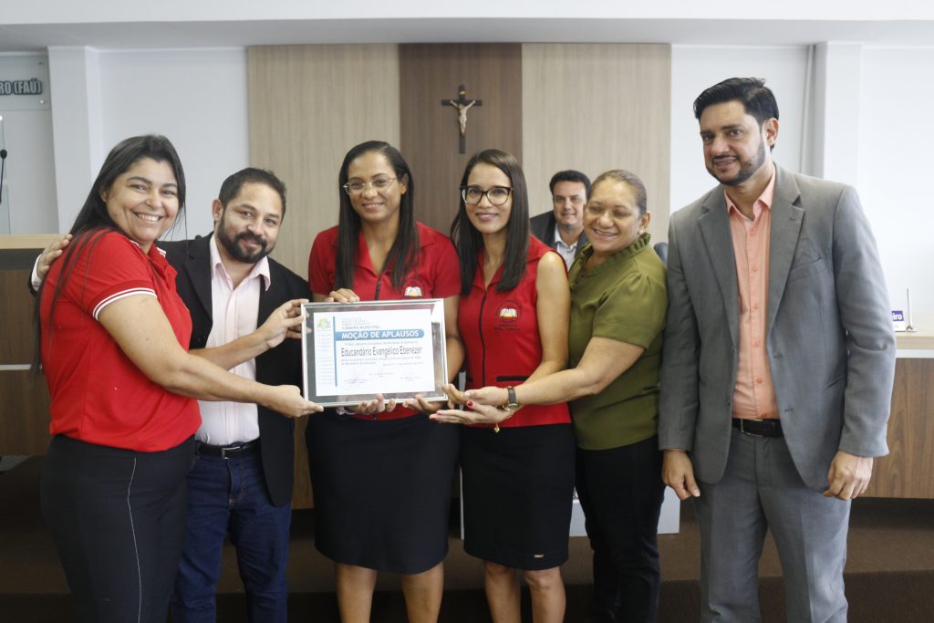 Sargento Jenilson destaca a importância de homenagear a educação “ É uma forma reconhecer as boas práticas que vão trazer efeito para o desenvolvimento da nossa cidade por meio de uma maior qualidade na educação e o Ebenézer tem sido esse exemplo com esse reconhecimento do MEC”, pontou o parlamentar.