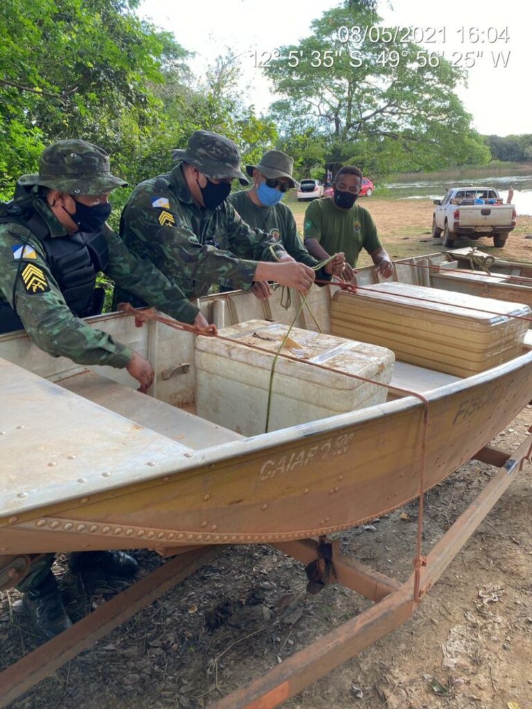 Durante ação integrada da Polícia Militar, representada pelo Batalhão de Polícia Militar Ambiental (BPMA), e a Fundação Nacional do Índio (FUNAI), às margens do rio Javaes, município de Formoso do Araguaia, neste sábado (08), houve flagrante de dois indivíduos, de 38 e 50 anos, transportando 80 quilos de pescados de várias espécies (surubim, pacu e piau), sem autorização da autoridade ambiental competente.