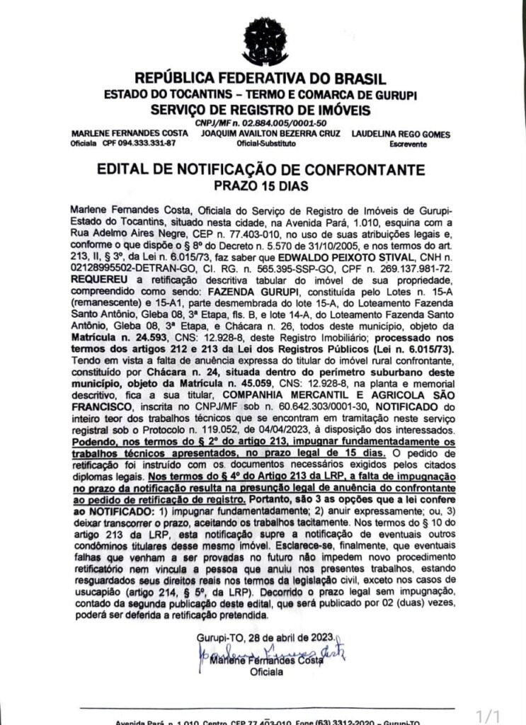 Edital de Notificação de Confrontante