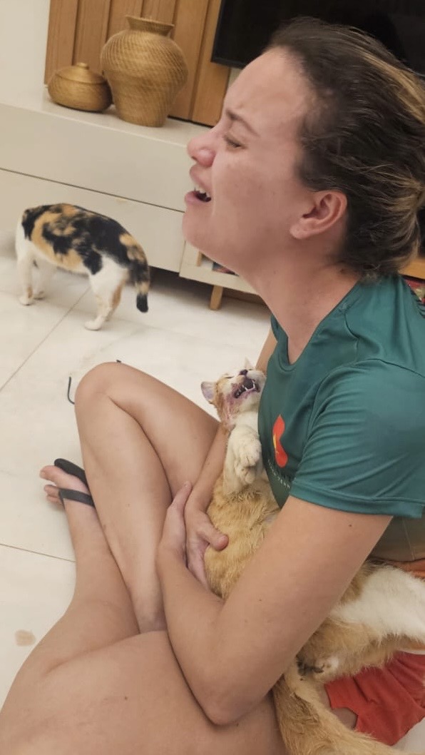 Lôra, assim como muitos gatos dali, carregava traumas profundos. Tinha no olhar o medo e a desconfiança de quem já conheceu o abandono e a violência. Acolhemos ela aqui em casa . Demos o essencial: amor, comida e proteção. Mas nada disso foi suficiente para protegê-la da maldade disfarçada de civilidade.