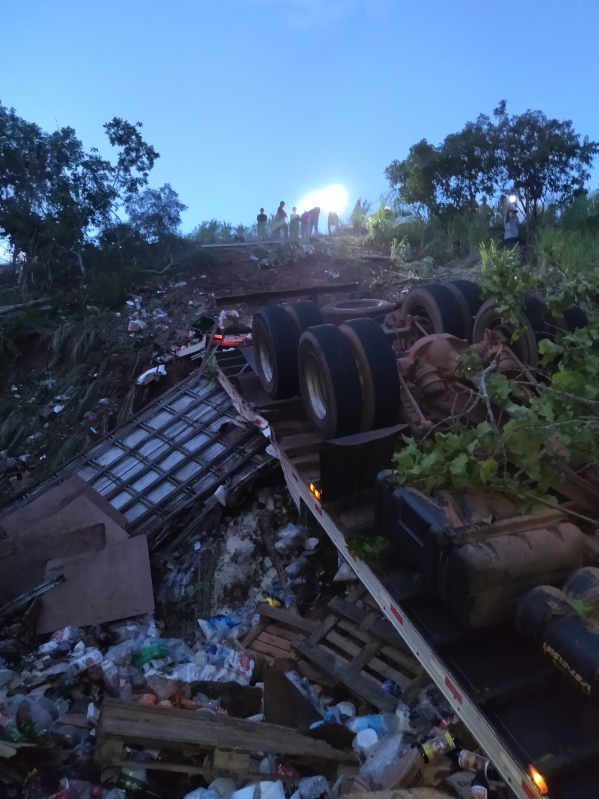 Um caminhão Mercedes-Benz L 1316, que trafegava sentido cidade de Ponte Alta, saiu de pista em uma curva e adentrou um barranco de aproximadamente 15 metros de altura. O Corpo de Bombeiros Militar, PM e Polícia Científica estiveram no local.