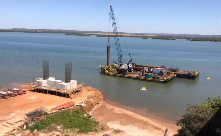 A secretária de Estado da Infraestrutura e presidente da Ageto, Juliana Passarin, explica que o primeiro pilar submerso a ser construído é o 18. “A ponte terá 22 pilares, seis deles fora do rio e 16 submersos; nós já concluímos as fundações de quatro dos seis em terreno seco e iniciamos o primeiro dentro do rio”, destaca a gestora.