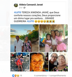 A anciã indígena Teresa Xivenva Javaé, de 102 anos, da aldeia Canuanã, na ilha do Bananal, faleceu nesta sexta-feira. Ela estava internada em estado grave com sintomas da covid-19.