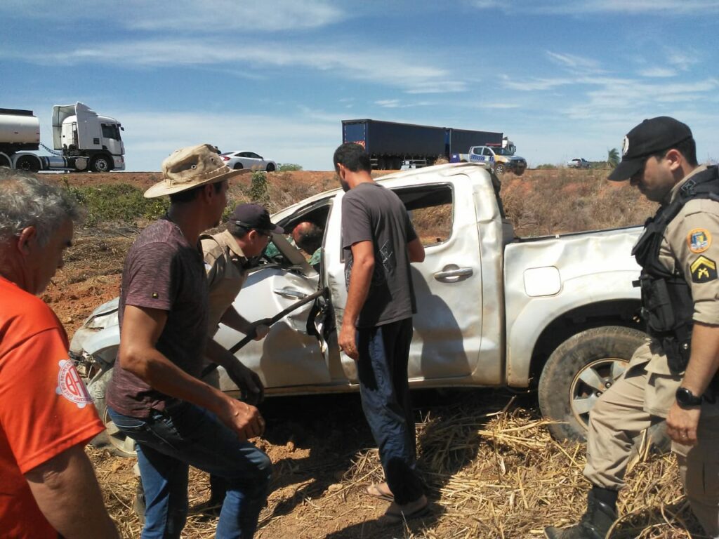Um homem ficou ferido após a caminhonete que ele dirigia capotar na BR-153. Segundo a Defesa Civil de Talismã, o veículo saiu da pista e o motorista ficou preso às ferragens. Para resgatá-lo, policiais usaram ferramentas improvisadas.