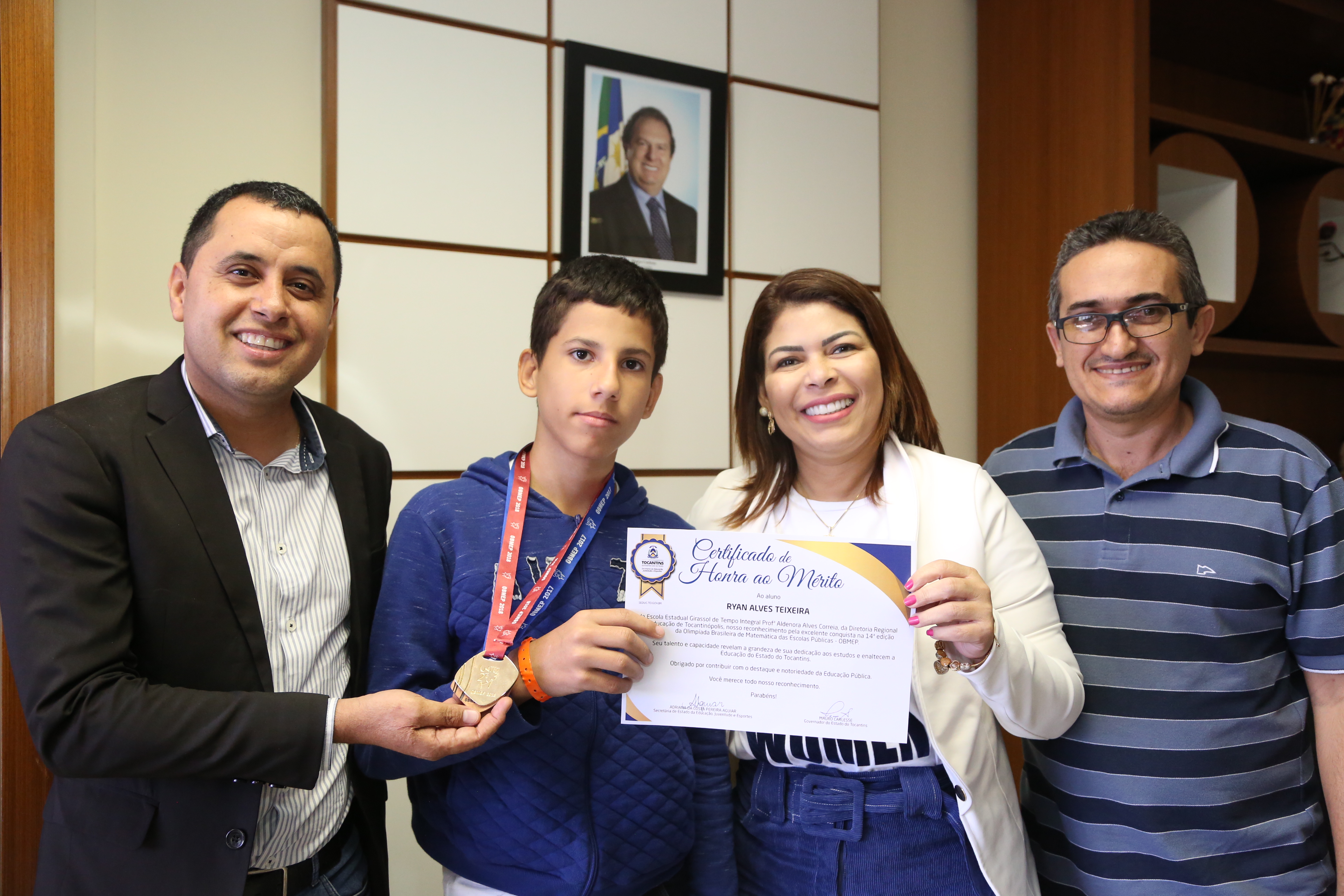 Antes de seguir viagem para Tocantinópolis, Ryan fez uma escala em Palmas, onde foi recebido pela secretária Adriana Aguiar, na Secretaria de Estado da Educação, Juventude e Esportes. Para a gestora, o estudante é um exemplo a todos os alunos do Tocantins. “Gostaria de dizer que estamos todos, o Tocantins inteiro, cheios de orgulho de você. Tenho certeza de que muitos estudantes vão passar a olhar a Matemática com mais carinho e dedicação por causa do seu exemplo”, destacou.