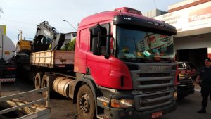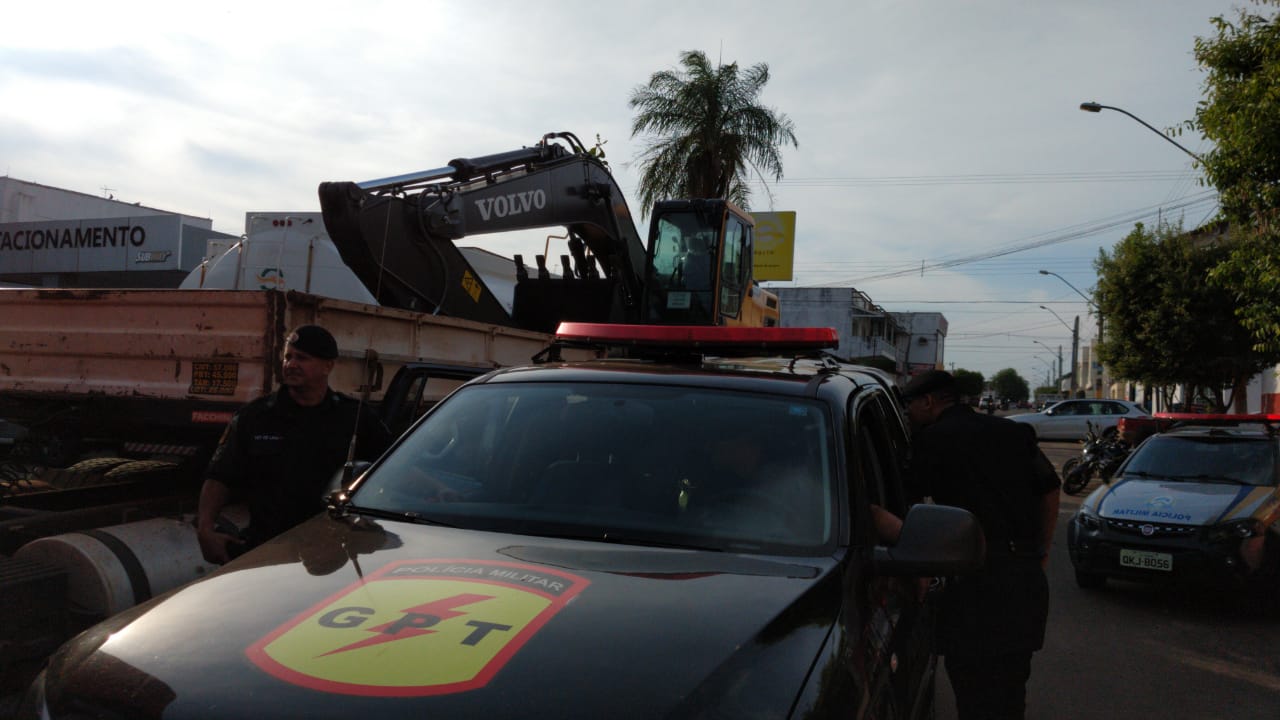 Segundo a PM, o roubo aconteceu no último domingo (20) no norte de Goiás. Criminosos armados renderam o motorista de um caminhão que estava transportando uma máquina escavadeira.