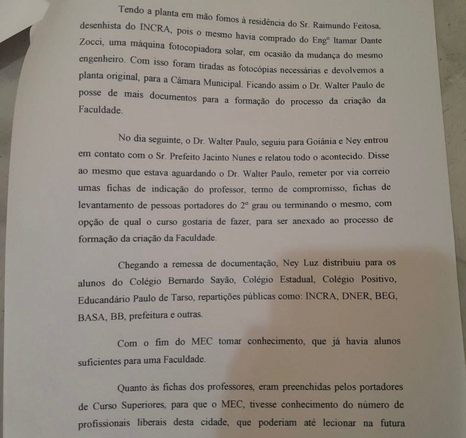 A trajetória da Fafich teve início com um encontro significativo entre Walter Paulo e Ney Luz em um posto de combustível em Gurupi. Esse encontro representou o primeiro passo para a criação da faculdade, que contou com o apoio do ex-prefeito Jacinto Nunes. Em um pronunciamento durante a formatura da primeira turma da Fafich, Walter Paulo destacou a importância do jovem Ney Luz, que o inspirou a trabalhar pela realização do projeto educacional.