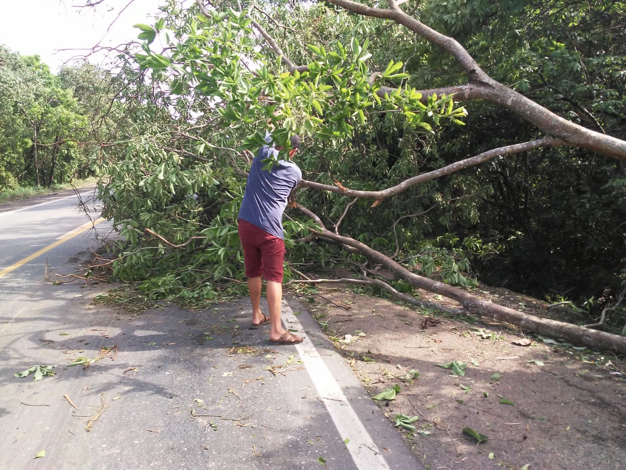 Forte chuva derruba árvores na BR-153 e interdita parcialmente pista entre Talismã e Alvorada