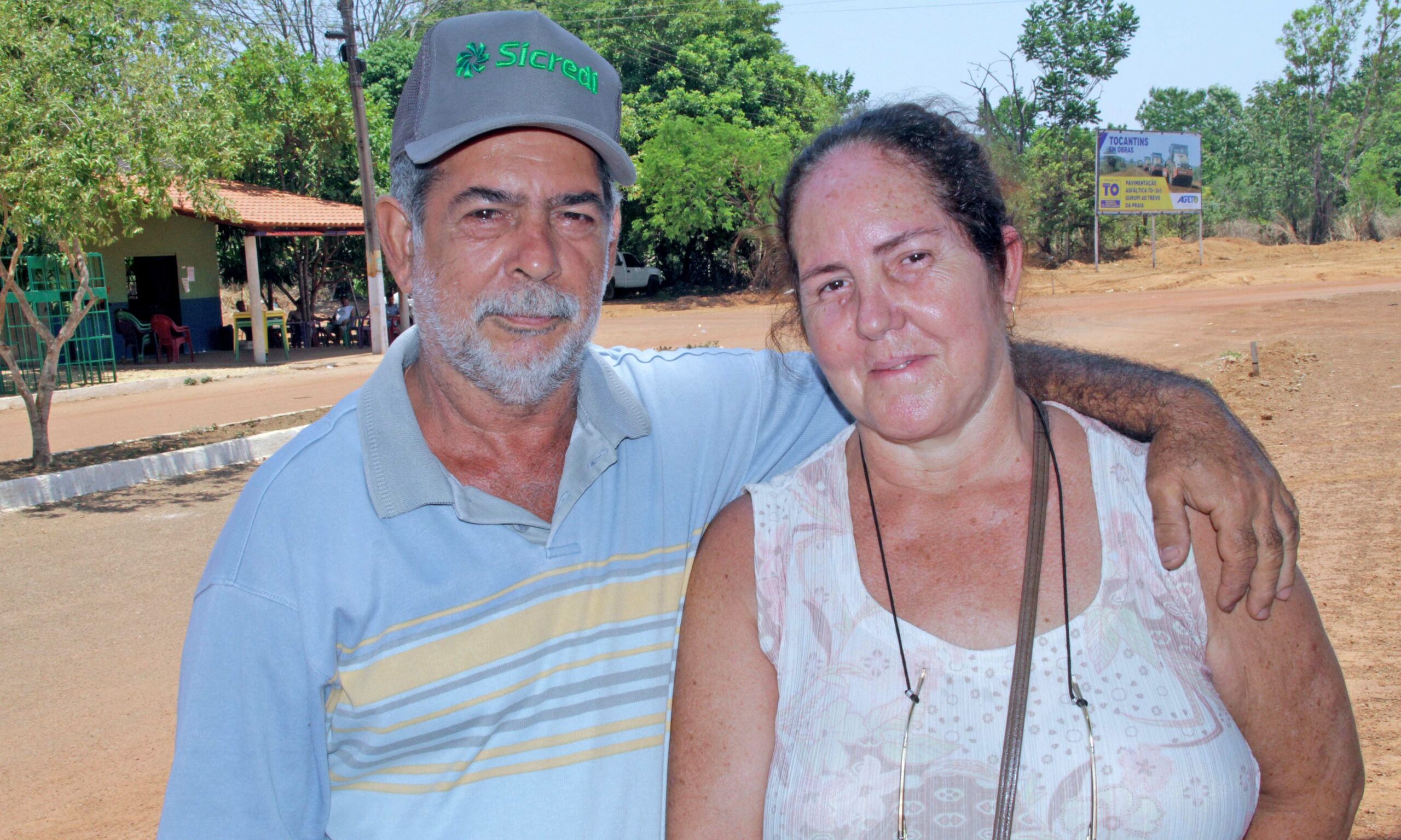 O casal de aposentados Romis Miranda, 64 anos, e Sirlei Miranda, 56 anos, mora há cinco anos próximo ao Trevo da Praia. O casal contou que aguarda com expectativa a conclusão do asfalto.