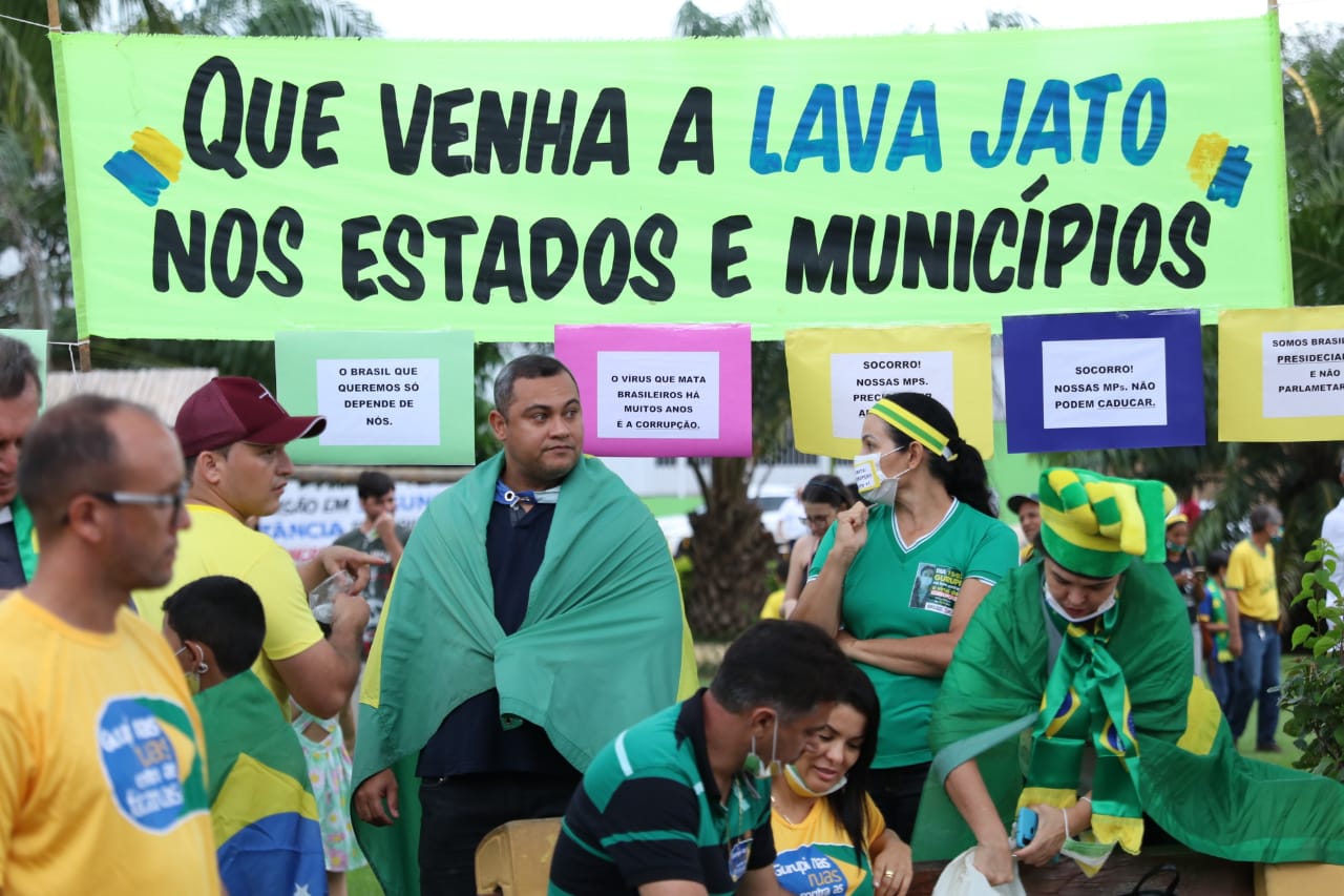 Com máscaras nos rostos, onde a palavra de ordem foi que a corrupção mata mais que o coronavírus. Os discurso foram em favor da governabilidade do presidente Jair Bolsonaro (sem partido) e protestos ao poder judiciário, Congresso Nacional, imprensa com foco na Rede Globo e restou críticas até para o vereadores e políticos de Gurupi com pedido de uma Lava Jato nos estados e municípios.