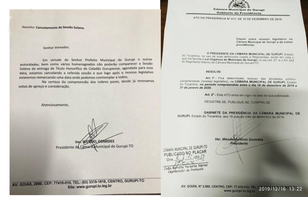 Em meio as ameaças de protestos contra o aumento de salários e do número de vereador, a presidência da Casa oficializou os 13 vereadores que irão oferecer, cada uma, três títulos em Sessão Selene foi adiada para depois do Recesso Legislativo que inicia nesta segunda-feira, 16, e se estenderá até o dia 31 de janeiro de 2020.
