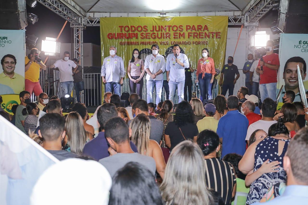 Já o prefeito Laurez Moreira, em seu discurso, lembrou como Gurupi era conhecida há 8 anos. “Cidade do buraco, cidade das ruas sujas. E hoje o que vemos é desenvolvimento, são contas pagas e obras em todos os cantos. É importante lembrar que quem me ajudou está aqui em cima desse palanque. Tenho convicção que estão aqui pessoas de bem” destacou mencionando Gutierres e Eduardo.