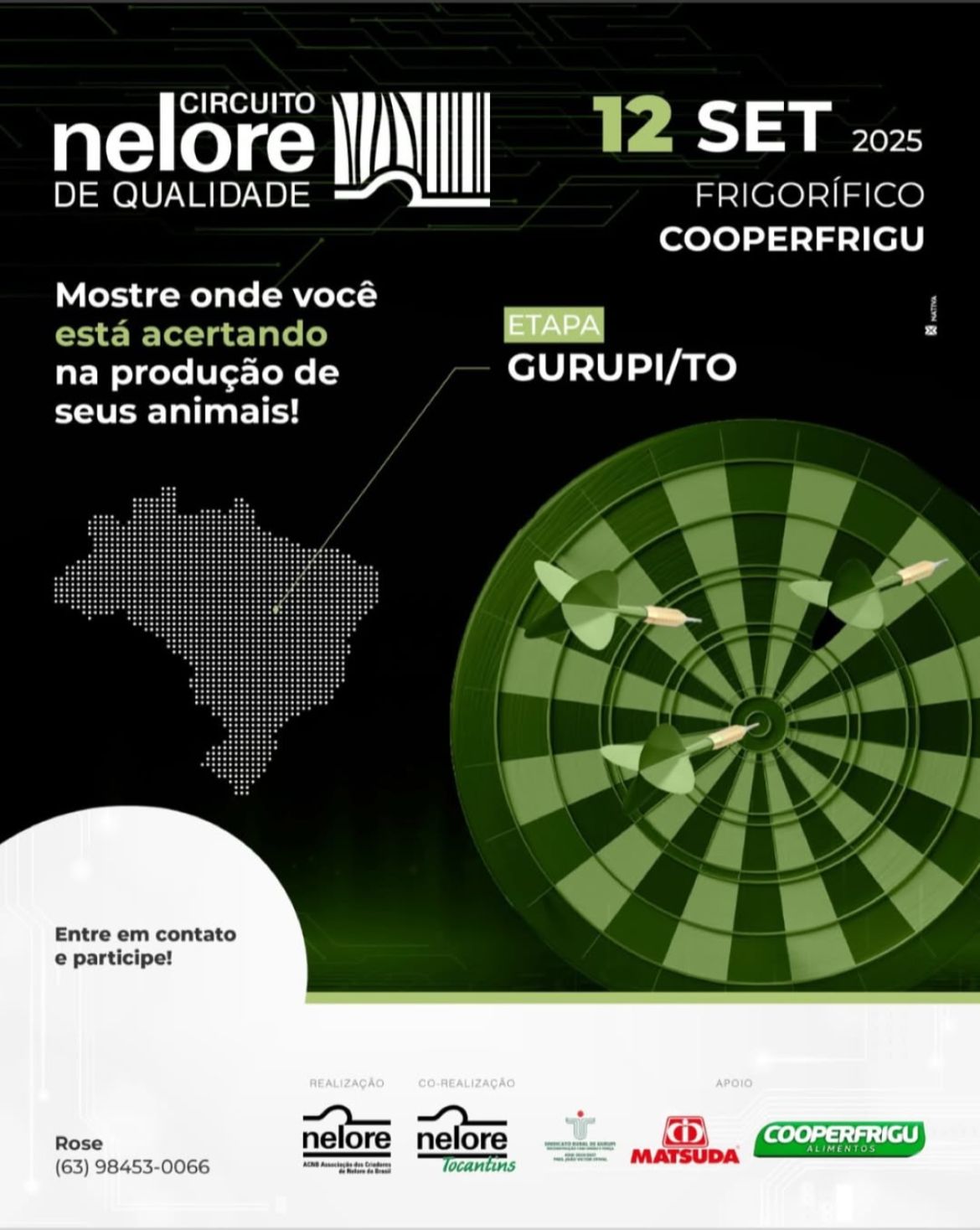 Além da ACNT e da Cooperfrigu, o evento conta com o apoio da Matsuda Sementes e Nutrição Animal, do Sindicato Rural de Gurupi, e da Associação Brasileira dos Criadores de Zebu (ABCZ), por meio do programa PMGZ Carne, que incentiva o uso de genética PO com foco em produtividade e qualidade.