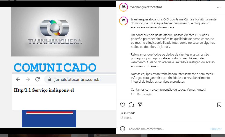 Lar»Notícias»Brasil»Hackers sequestram arquivos da TV Anhanguera, afiliada da Globo em Goiás e Tocantins, sites do jornal O Popular, Daqui e Jornal do Tocantins