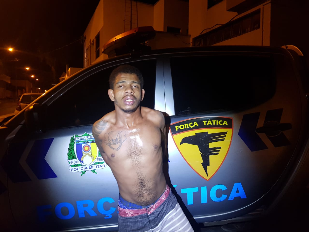A abordagem da Força Tática aconteceu no centro de Gurupi, o suspeito fugiu pulando muros de casas e se escondeu sobre o teto de um imóvel.