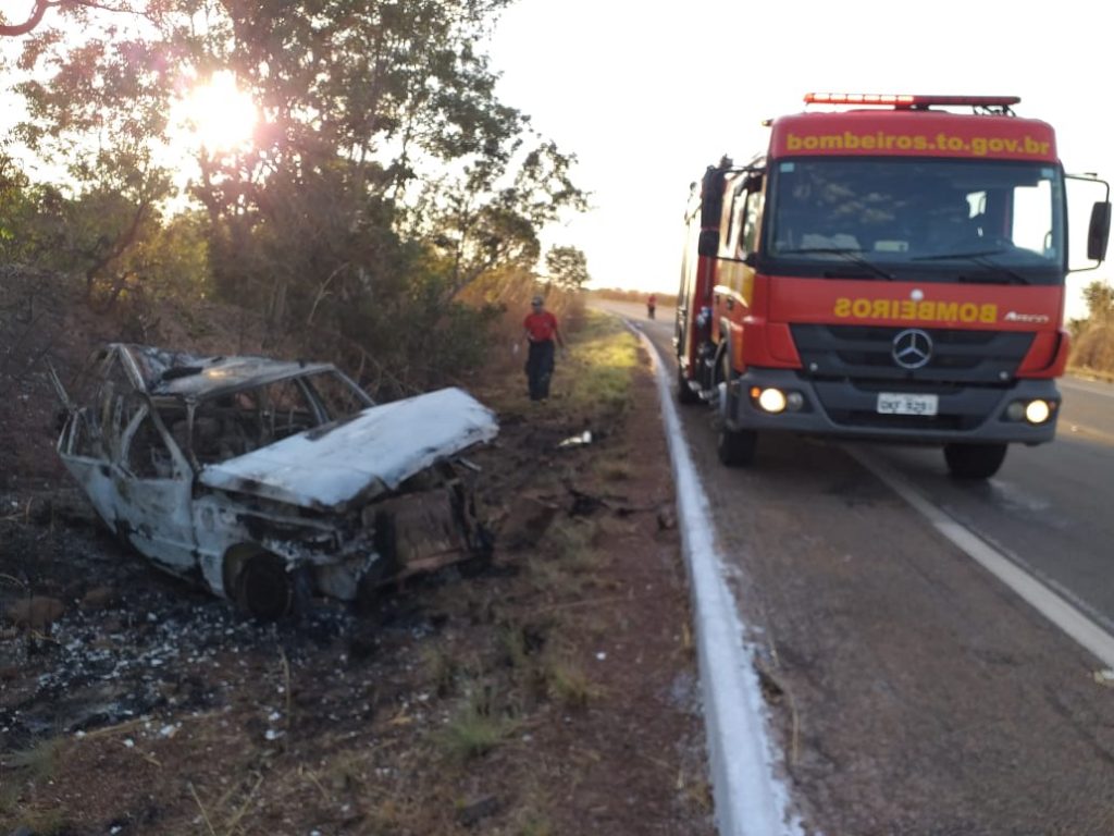 De acordo com a Polícia Rodoviária Federal, a vítima que morreu carbonizada é um homem. A mulher que também estava no carro foi levada para Peixe e passa bem.