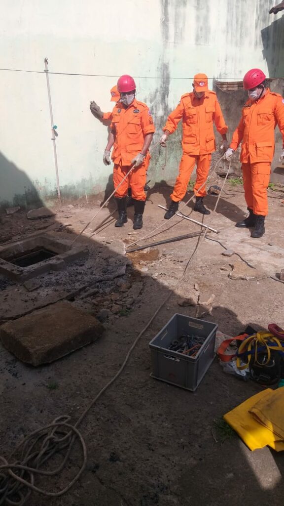O Corpo de Bombeiros encontra-se no local para remover o corpo de dentro de uma cisterna.