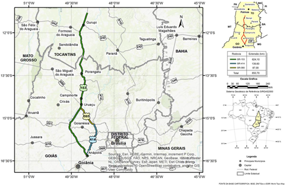 – Rodovia BR-153/TO – De Aliança do Tocantins/TO à divisa de estado com Goiás;