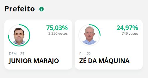 Do total, Marajó teve 2.250 votos (75,03%) contra 749 (24,97%) o ex-prefeito Zé da Máquina (PL).