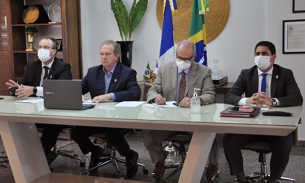 Acompanharam o governador Mauro Carlesse durante a videoconferência com o presidente Jair Bolsonaro, os secretários de Estado da Saúde, Edgar Tollini; da Comunicação, Élcio Mendes; da Fazenda e Planejamento, Sandro Armando; da Governadoria, Divino Allan; da Casa Civil, Rolf Vidal; e da Casa Militar, coronel Silva Neto.