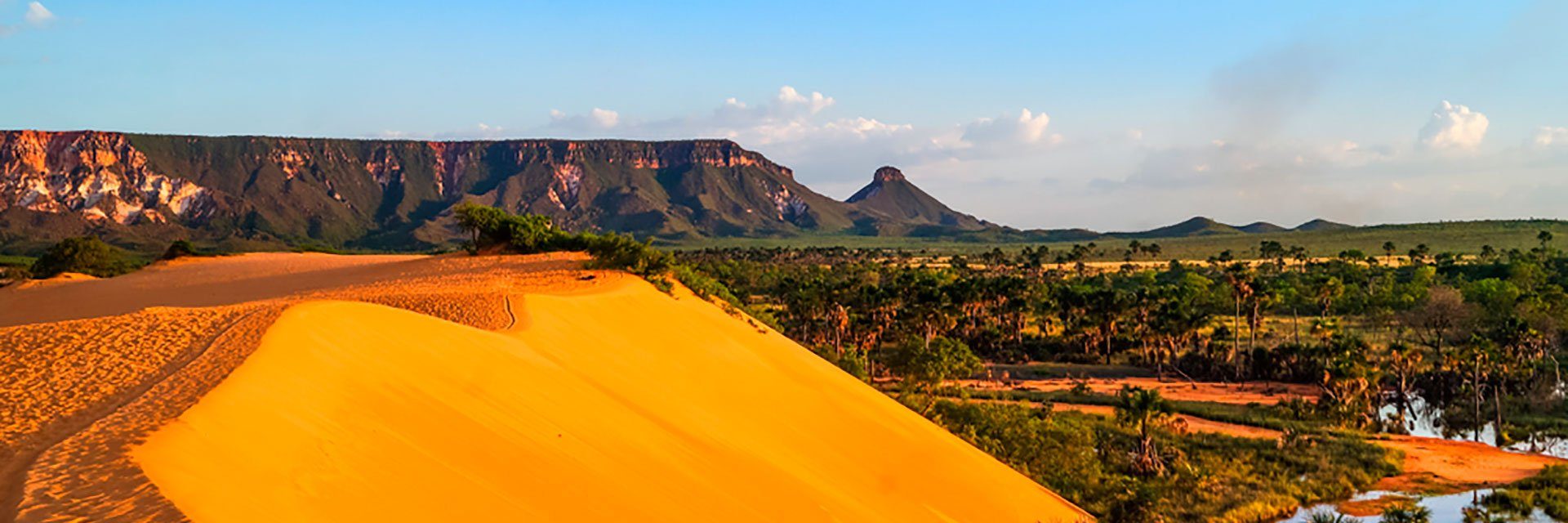 Na região do Jalapão, onde o PEJ está inserido, existe uma diversidade de paisagens. Além de deserto, com imensas dunas alaranjadas e uma grande quantidade de cursos d’água, existe ainda as rochas e a vegetação diferenciada, com imensos campos de capim dourado e buritizais.