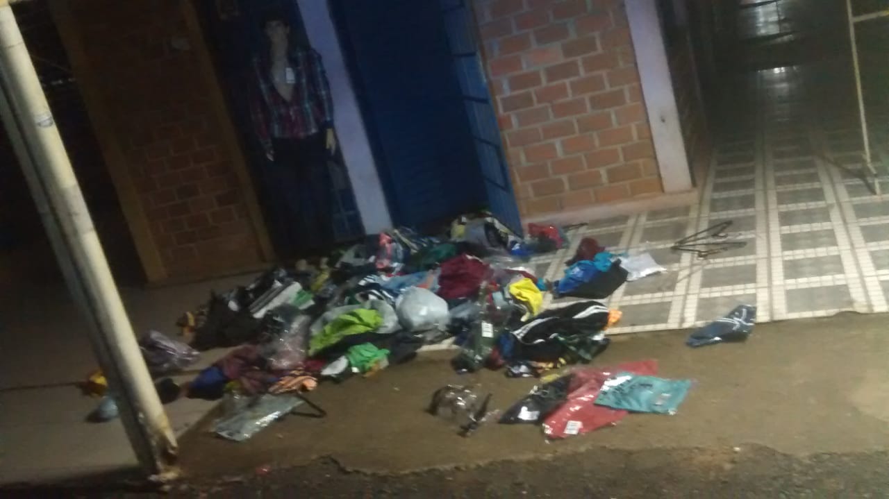 De acordo com a Polícia Militar, o menor foi flagrado logo após ter arrombado uma loja, parte do material já estava do lado de fora.