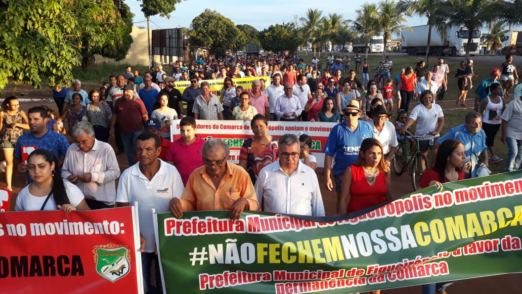Liderado pelo prefeito Fernandes Martins Rodrigues, que desde 1994 exerce o cargo de Oficial de Justiça, vários moradores da cidade de Figueirópolis saíram às ruas da cidade para manifestar contra suposta ameaça de fechamento da comarca do município.