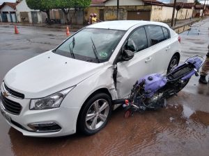 A colisão entre carro e moto foi registrada na Avenida Rio Branco esquina com a rua 12, região central do município gurupiense.