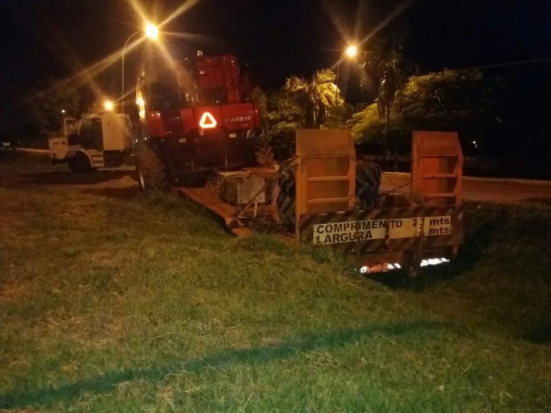 Chegando ao local a equipe se deparou com um veículo de grandes dimensões transportando uma máquina agrícola, o veículo havia saído da pista e repousado no bueiro do canteiro central divisor das pistas da rodovia BR 153, perímetro urbano de Gurupi, o veículo acidentou-se sozinho e ninguém ficou ferido.
