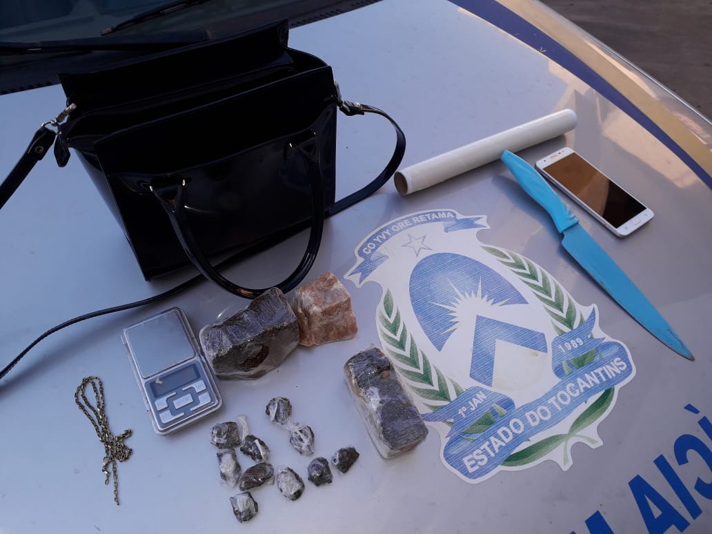 A PM informou ainda que no endereço da mulher foi localizado mais uma porção de maconha e 10 frações da mesma substância pronta para venda, como também R$50,00, um rolo de plástico filme, uma faca utilizada para fracionar as substâncias e uma balança de precisão.