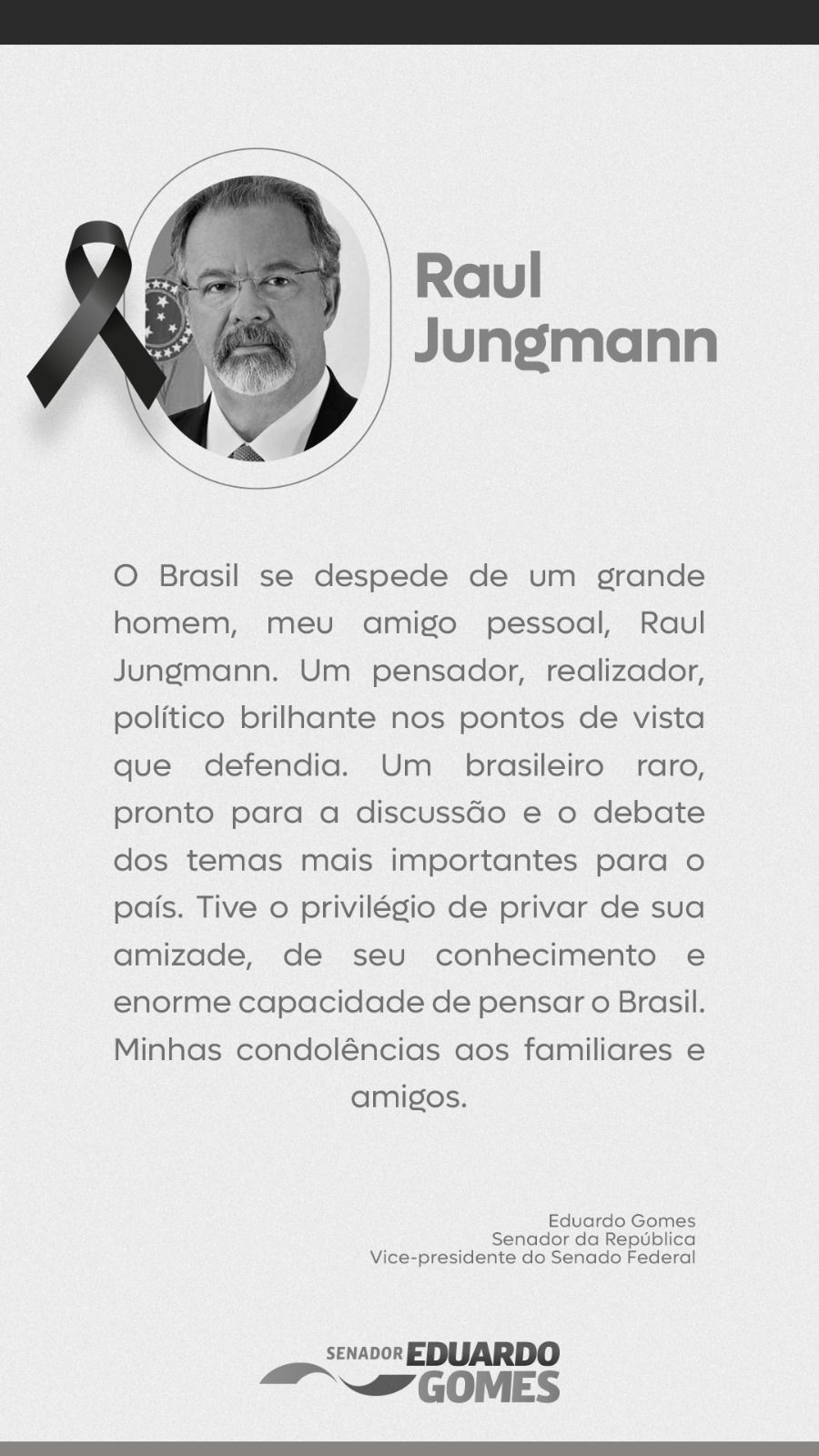 Nota de pesar do senador Eduardo Gomes