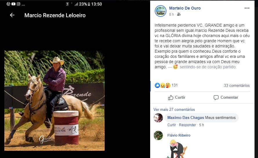 Nas redes sociais vários amigos e leilões lamentaram a perda de Márcio Resende: