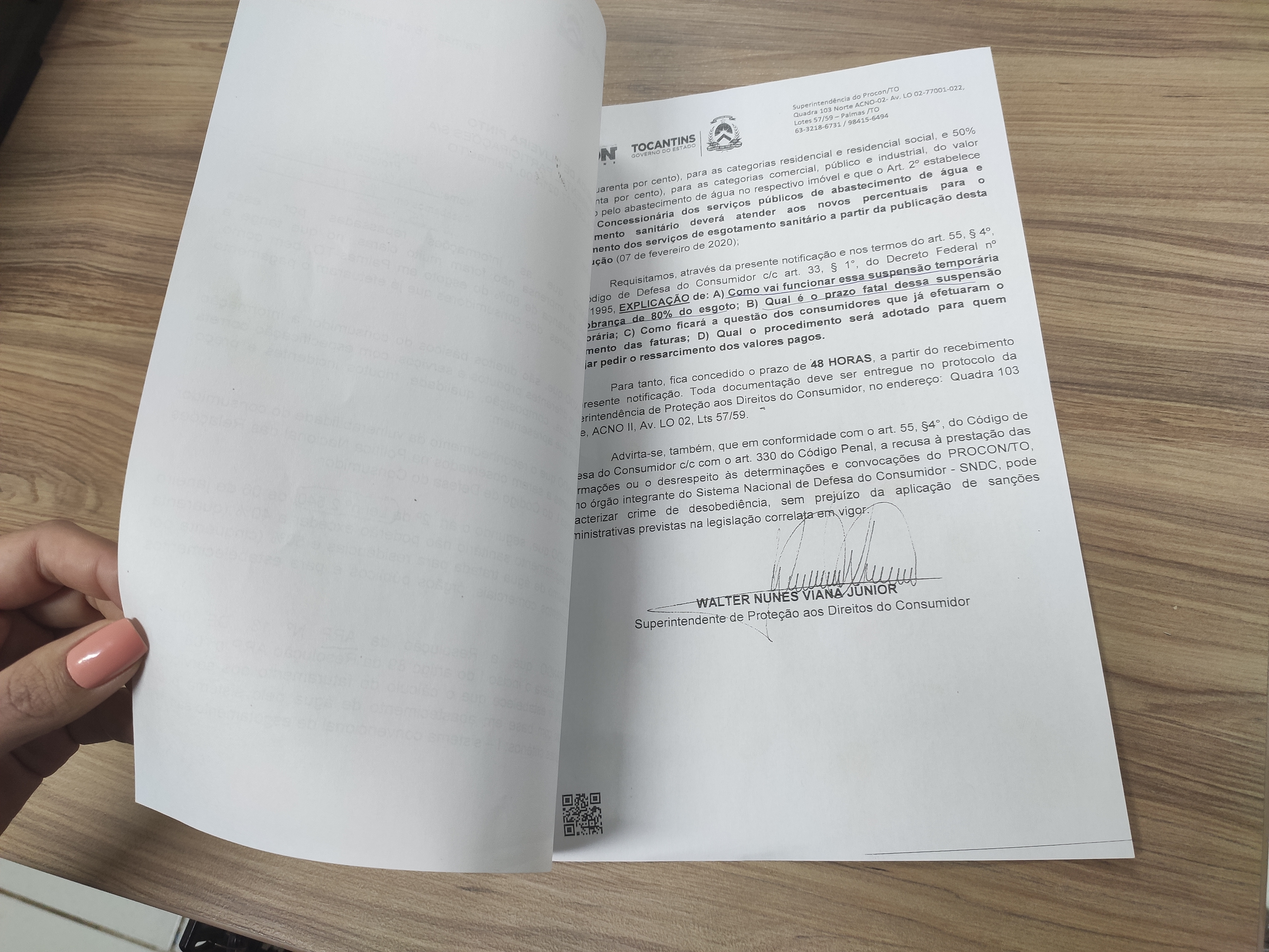 O prazo estipulado pela Gerência de Fiscalização do Procon Tocantins para que a concessionária de água cumpra a notificação foi de 48 horas, a partir do recebimento do documento. Toda a documentação deverá ser entregue no protocolo da Superintendência de Procon Tocantins.