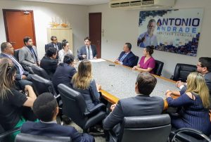 O presidente da Assembleia, Antônio Andrade, se reuniu no final da tarde desta segunda-feira, 16, com dirigentes da Ordem dos Advogados do Brasil – Seccional Tocantins para tratar do Projeto de Lei encaminhado pelo Governo do Estado que cria a Advocacia Dativa no Tocantins. O projeto, que tem sido defendido pela atual gestão da OAB/TO, amplia o acesso à Justiça e garante a preservação de um princípio fundamental da sociedade, que é o direito à assistência jurídica gratuita efetiva do para a população carente.
