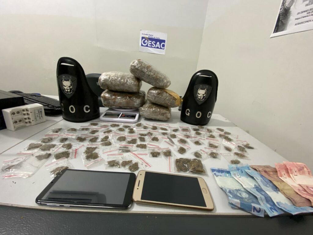 Foram localizados com os suspeitos uma grande quantidade de Skank, droga conhecida também como super maconha. De acordo com a PM, foram apreendidos 2Kg e meio de Skank, celulares, balança de precisão e dinheiro.