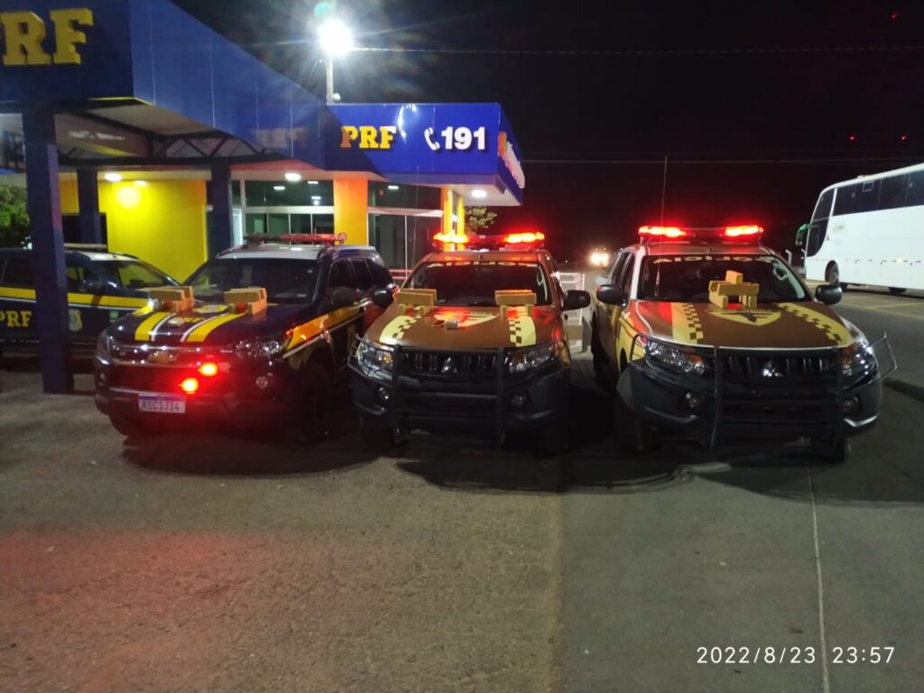 Equipe de Força Tática, Força Tática Cães e PRF realizou abordagem e com a utilização dos cães farejadores estes sinalizaram em quatro bagagens o indício que havia drogas. O motorista do ônibus nos apresentou o bilhete das malas e nos relatou que o proprietário estava na Poltrona 15.