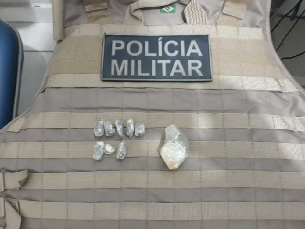 Na casa, o suspeito foi flagrado no portão com oito porções de uma substância análoga a maconha e duas porções de uma substância análoga a crack dentro de um copo que ao avistar os policiais, jogou para o outro lote do vizinho. O autor ainda resistiu a abordagem e tentou fugir, mas foi detido.