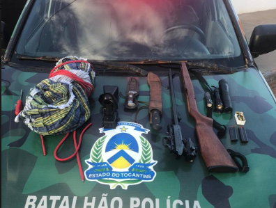 A primeira ocorreu na zona rural do município de Sandolândia, quando patrulhavam pela rodovia TO-181, a Guarnição de Patrulhamento Ambiental (GPA) interceptou e abordou um homem de 44 anos de idade, que transitava numa motocicleta, transportando um objeto semelhante a uma arma longa. Com o sujeito, foram localizados 01 (um) rifle CBC, calibre 22, e 28 munições intactas de mesmo calibre, além de outros acessórios característicos de quem pratica atividade de caça. Ao indagá-lo sobre o registro, o abordado disse que possuía mas não portava a referida documentação. Diante da situação, o autor foi conduzido para a central de flagrantes de Alvorada e os produtos exibidos para o delegado de plantão, sendo lavrado o auto de prisão em flagrante em desfavor do referido cidadão.