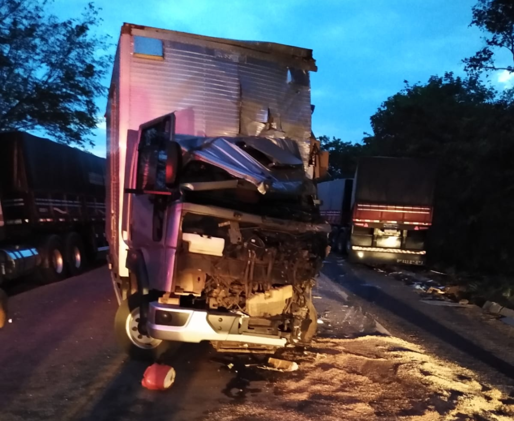 Segundo testemunhas, a colisão foi frontal envolvendo dois caminhões, um do tipo baú e outro bitrem. Um terceiro caminhão também se envolveu na batida. Um dos motoristas ficou preso às ferragens e foi socorrido pelo Corpo De Bombeiros.