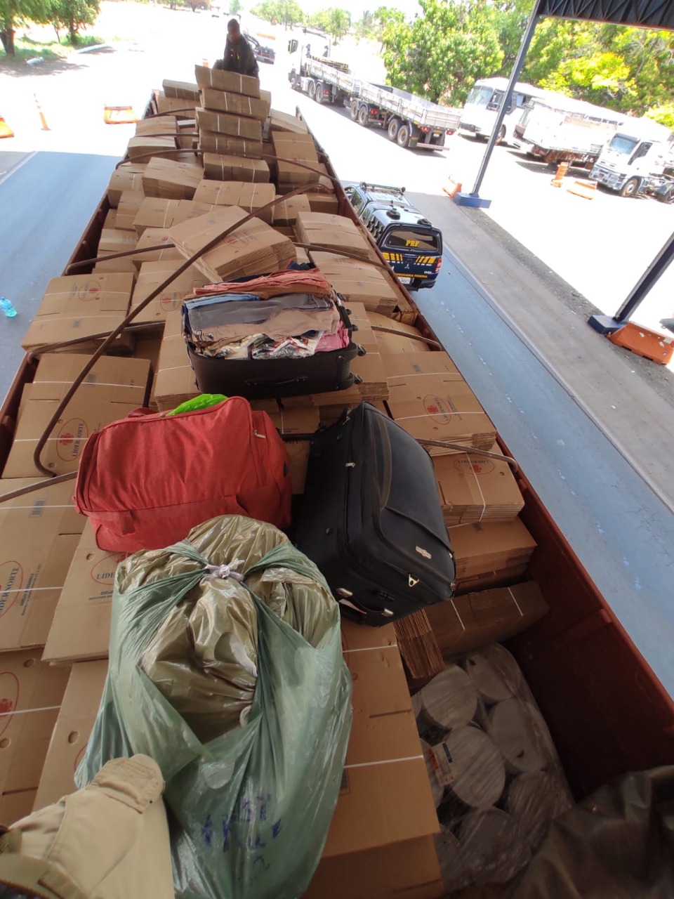 Por volta das 11 horas e 45 minutos, durante fiscalização de trânsito no km 666 da BR 153, a equipe policial deu ordem de parada ao caminhão Scania/P320 B8x2, de cor vermelha. Durante a abordagem, foi solicitada ao condutor a documentação fiscal da carga transportada.